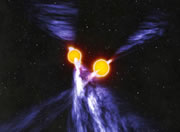 other, the larger star blasts away at its sibling's